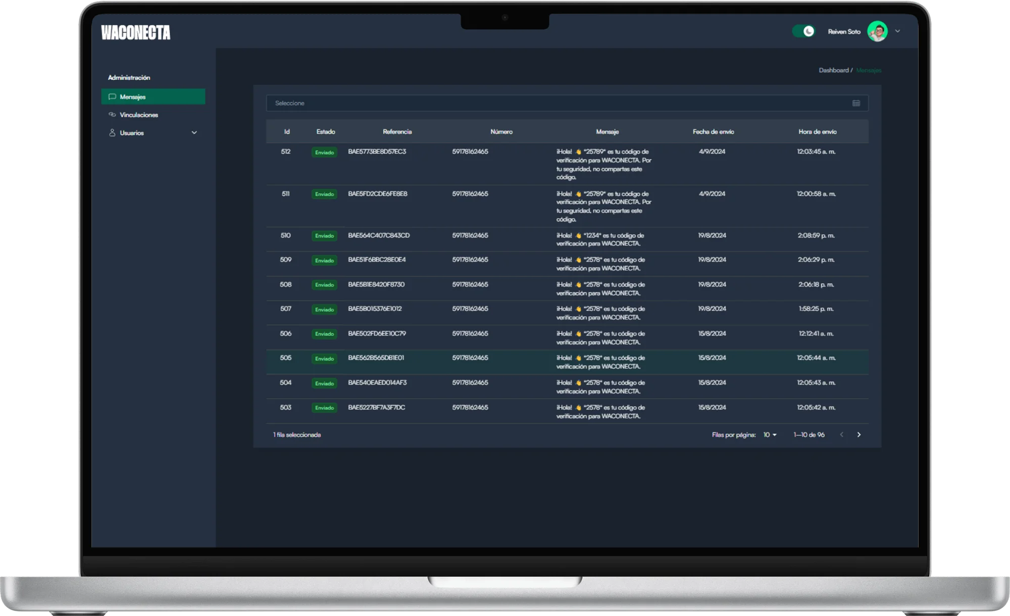 With Waconecta’s Administrative Portal, easily link your WhatsApp session, monitor sent messages in real-time, and efficiently manage your platform’s users. All in one place, designed to optimize the control and administration of sent OTPs, ensuring a secure and effective authentication flow.