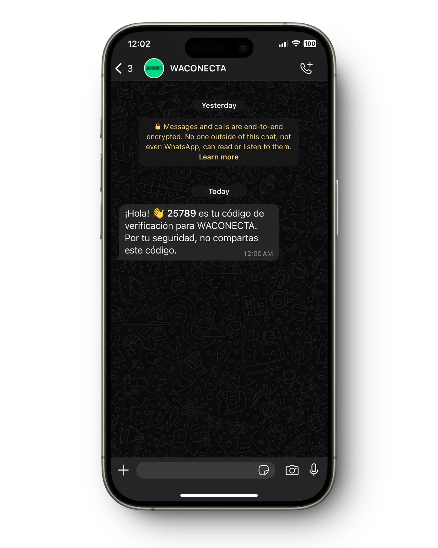 "message":"Hello! 👋 *25789* is your verification code for WACONECTA. For your security, do not share this code."